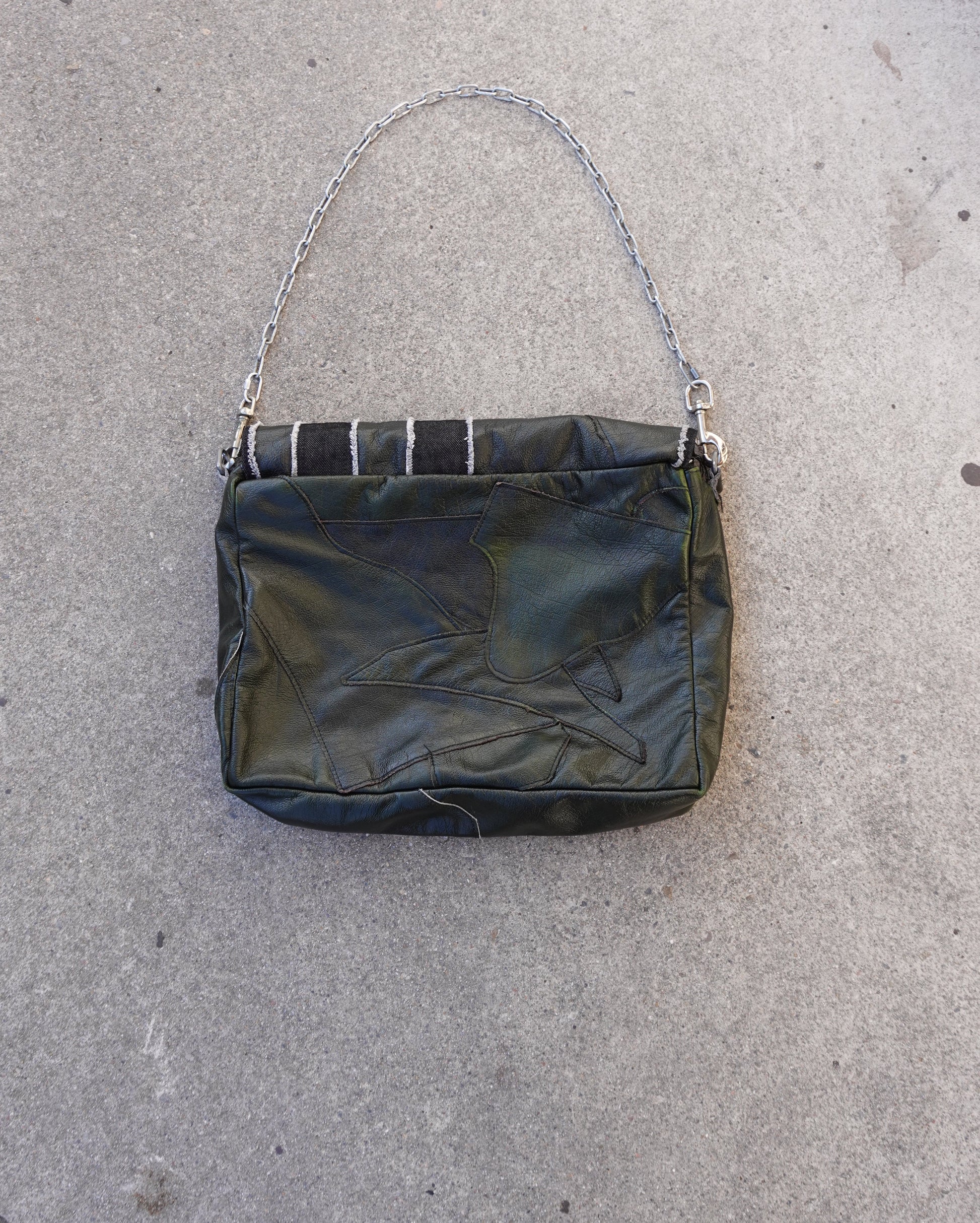 Made from real scrap leather from premium brand off cuts, saved from being thrown away as well as the chain and clips.
